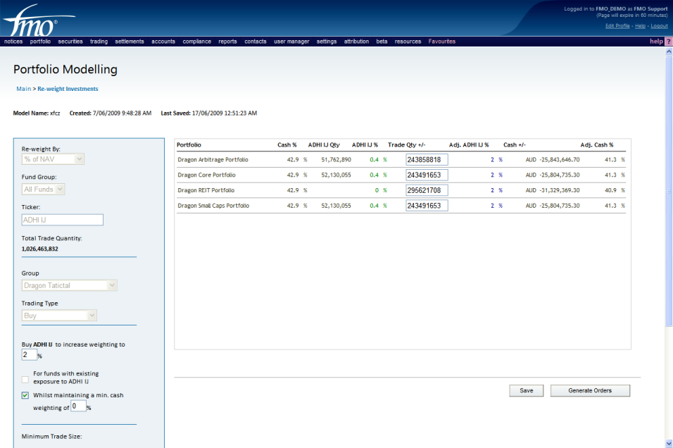 FMO assists clients in conducting ‘what-if’ analysis on portfolios to determine an optimum size trade to meet specified cash and/or investment exposure targets using the FMO Portfolio Modeler.